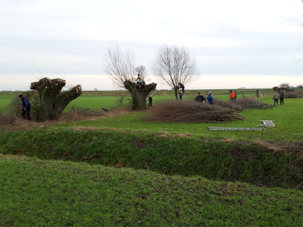 van de werkploeg ging in de uiterwaarden bij Rha de wilgen van de familie Lamers knotten;