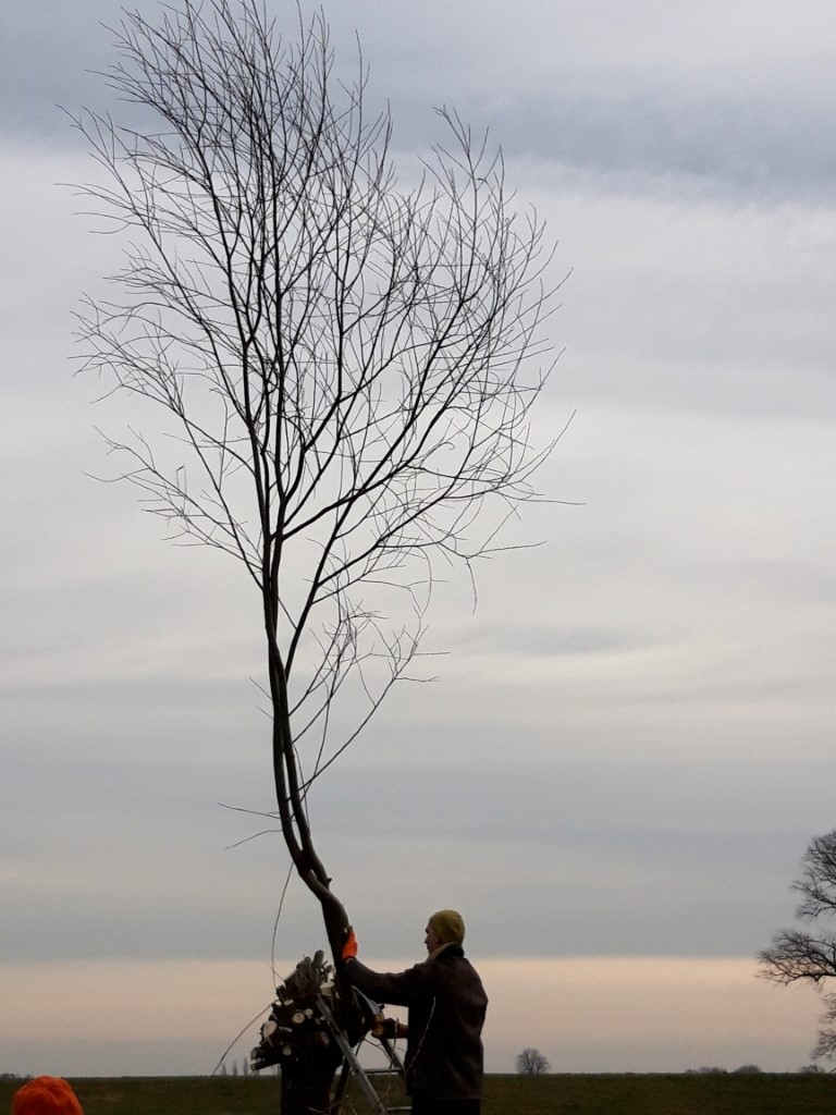 2. Een groep van 8 man ging naar de boerderij van Marcel van der Steen aan de Eekstraat in Steenderen. Zij hebben daar de wilgenstaken geplant, die we in december tijdens de werkochtend hadden geoogst.