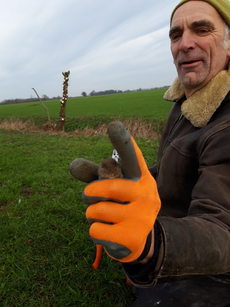 van de werkploeg ging in de uiterwaarden bij Rha de wilgen van de familie Lamers knotten;