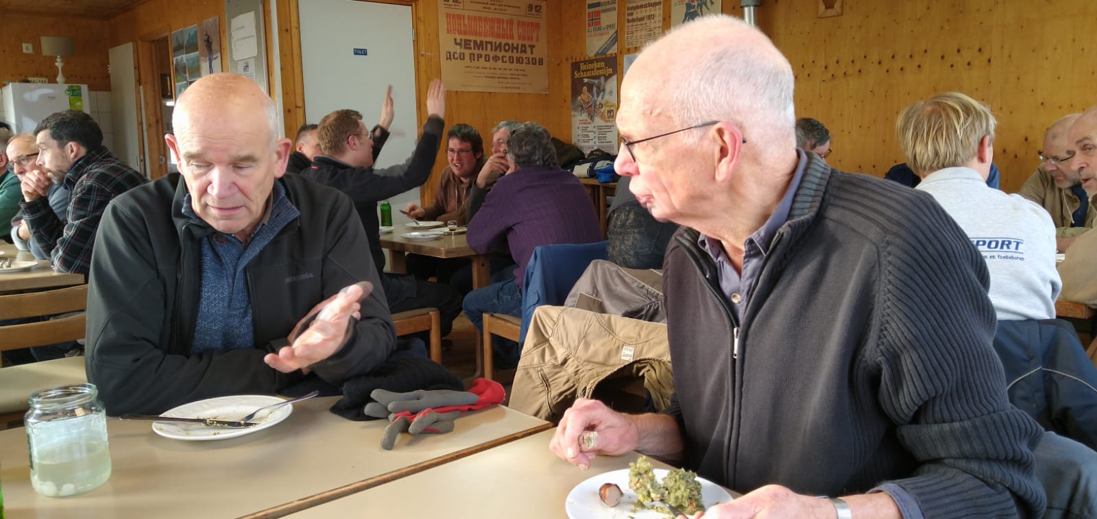 Na gedane arbeid was het goed toeven in de Ieskeet, waar de dames Ria Riethorst en Gerda Vredegoor ons verrasten met boerenkool met spek, braadworst en garnituur.